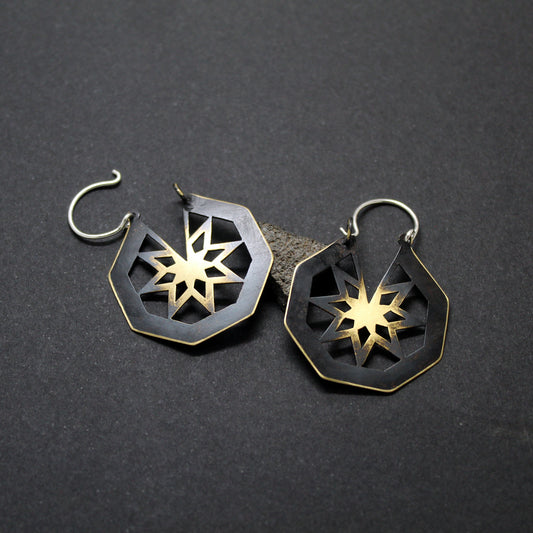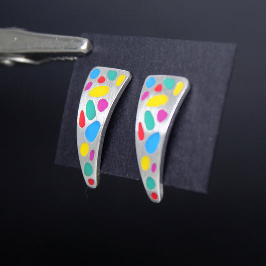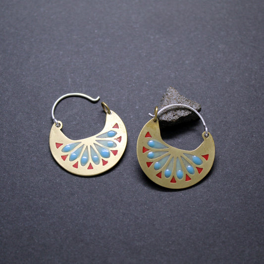 Pendientes pequeños de latón y plata 925 "Brisa Marina" con incrustaciones de resina UV
