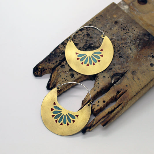 Pendientes de latón y plata 925 "Sol del Alba" con incrustaciones de resina UV