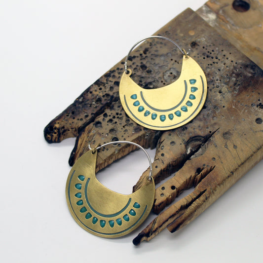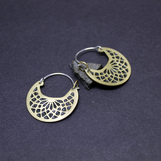 Pendientes pequeños de latón y plata 925 con grabado Jali