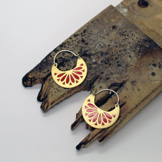 Pendientes pequeños de latón y plata 925 "Amanece en Marte" con incrustaciones de resina UV