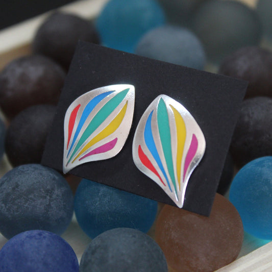 Pendientes de latón y plata 925 "Arco Celeste" con incrustaciones de resina UV