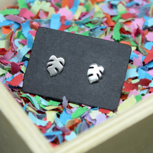 Pendientes MINI hojas de Monstera Deliciosa o Costilla de Adán en plata 925