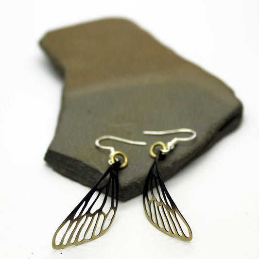 Alas de libélula, pendientes de latón y plata