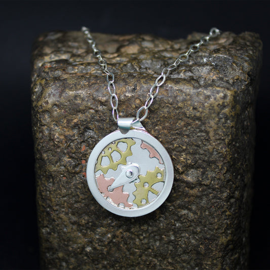 Fairy Compass pendant in 925 silver, brass and copper