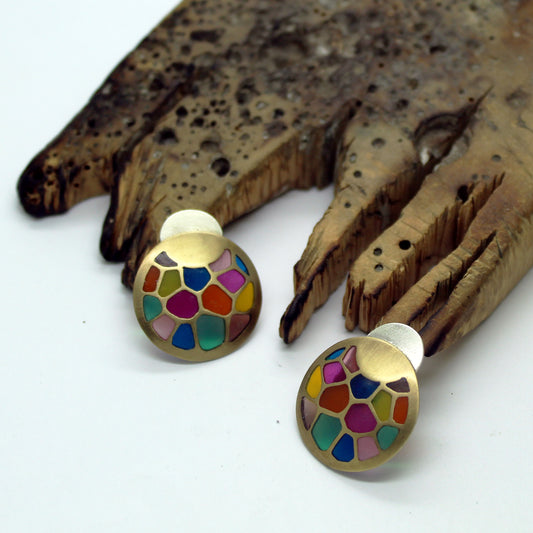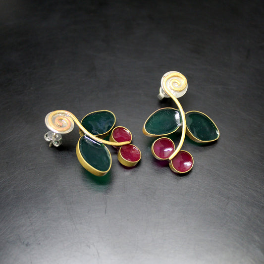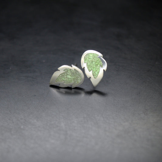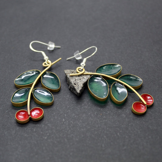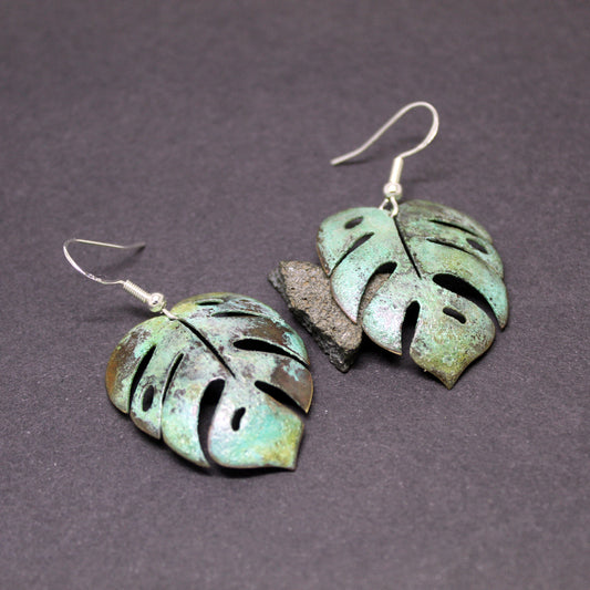 Pendientes hojas de monstera de latón y plata 925 con pátina verde