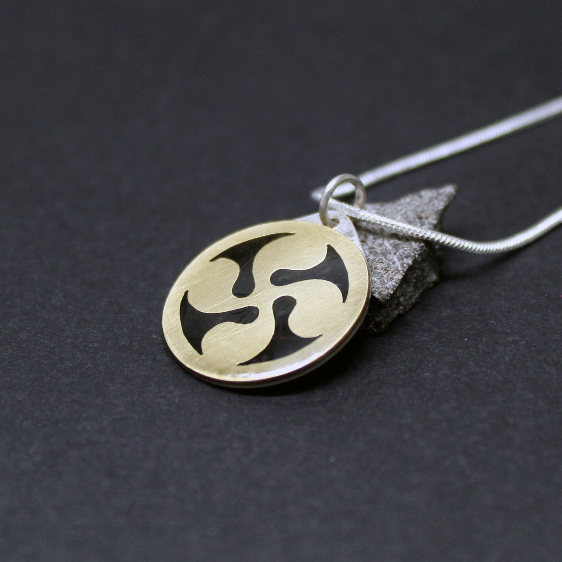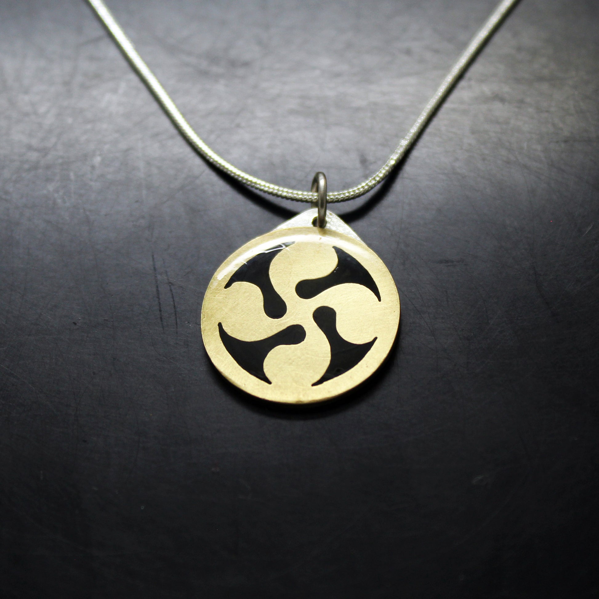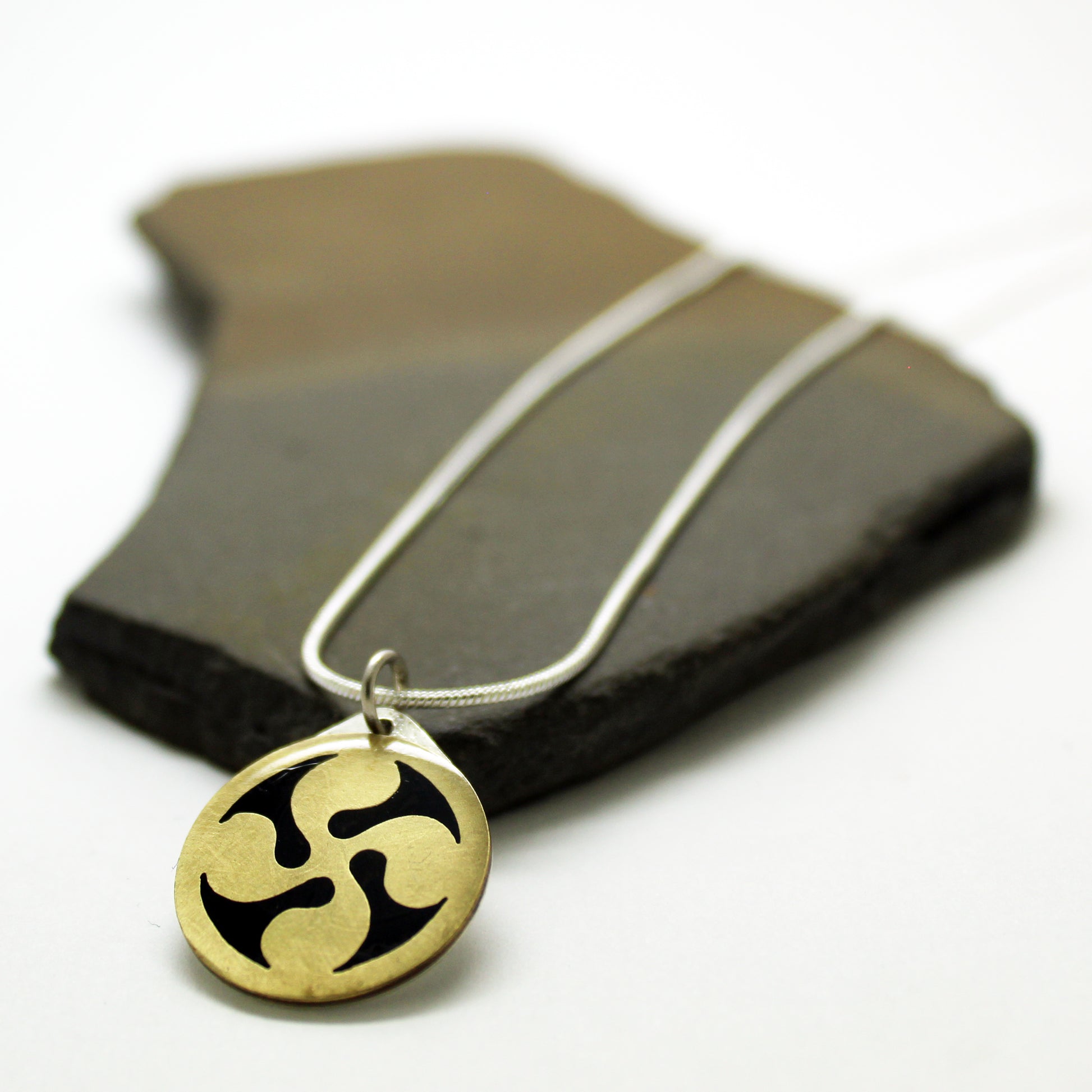 Símbolo ancestral de la cultura vasca, representa la vida en movimiento, la unidad y la fuerza de los cuatro elementos. Este colgante, hecho a mano en latón y plata 925, es más que una joya: es una conexión con las raíces, con la historia, con la esencia.