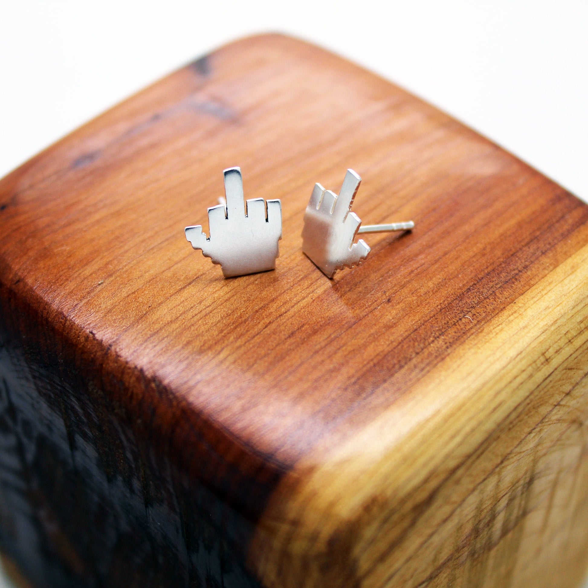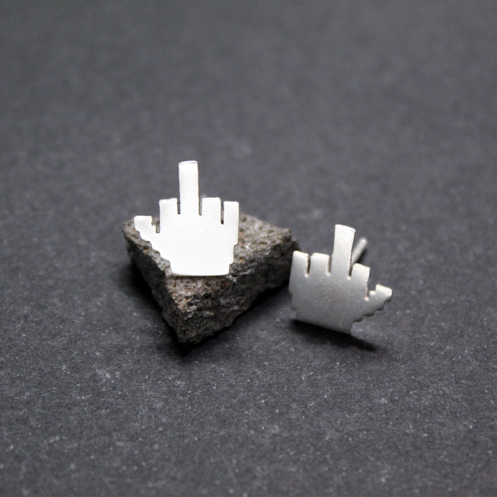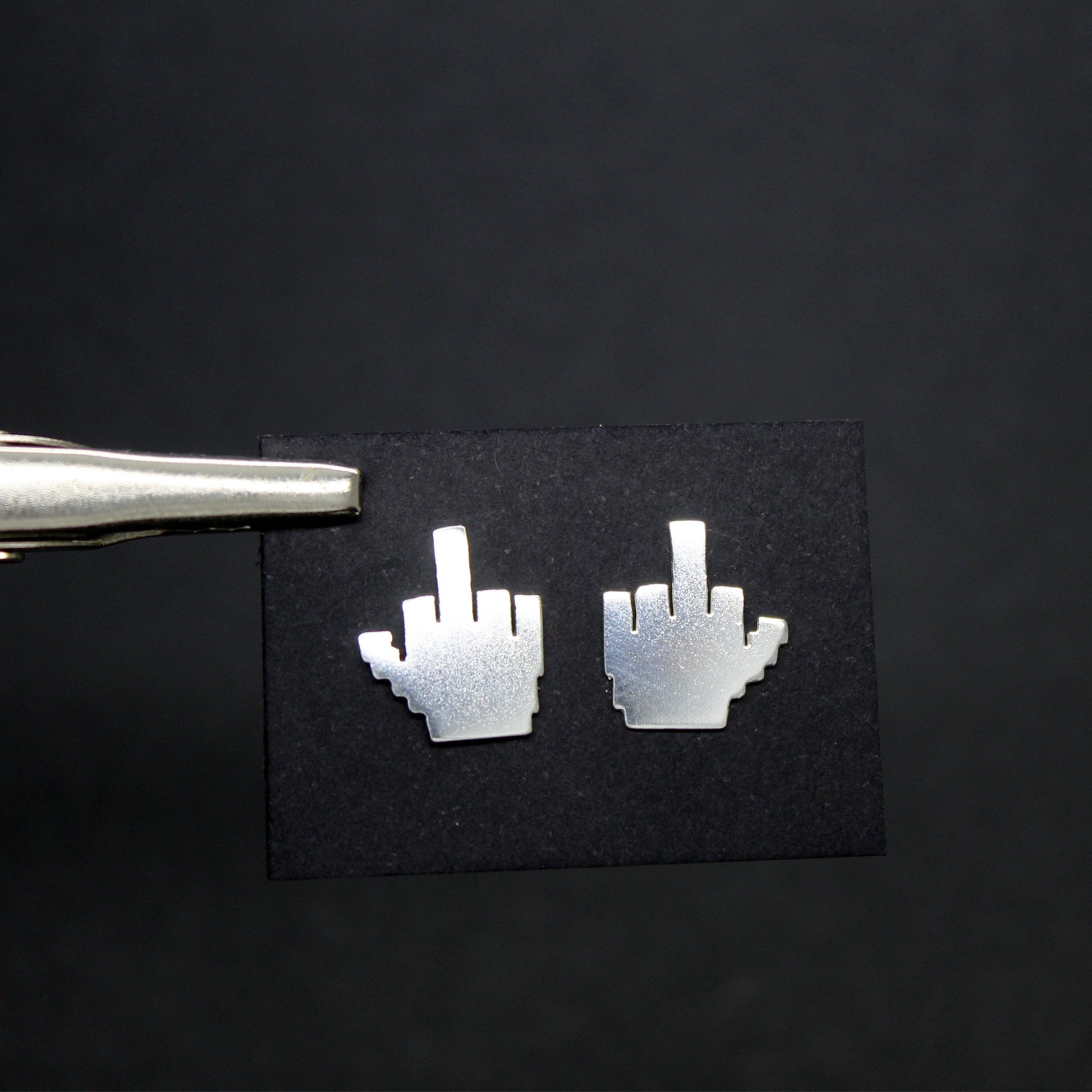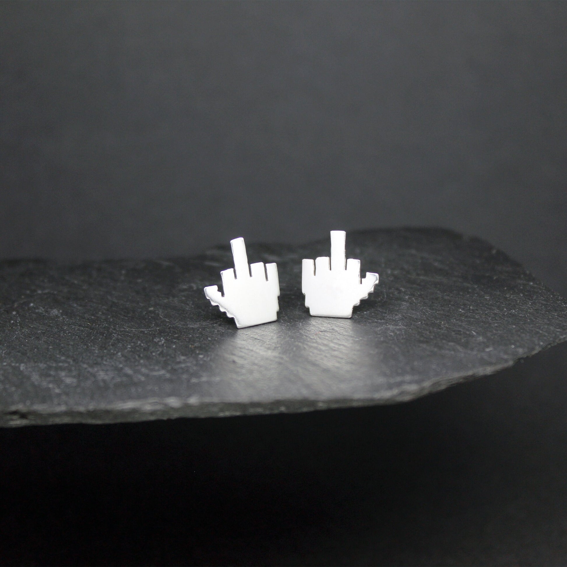 925 silver earrings 8-bit middle finger.