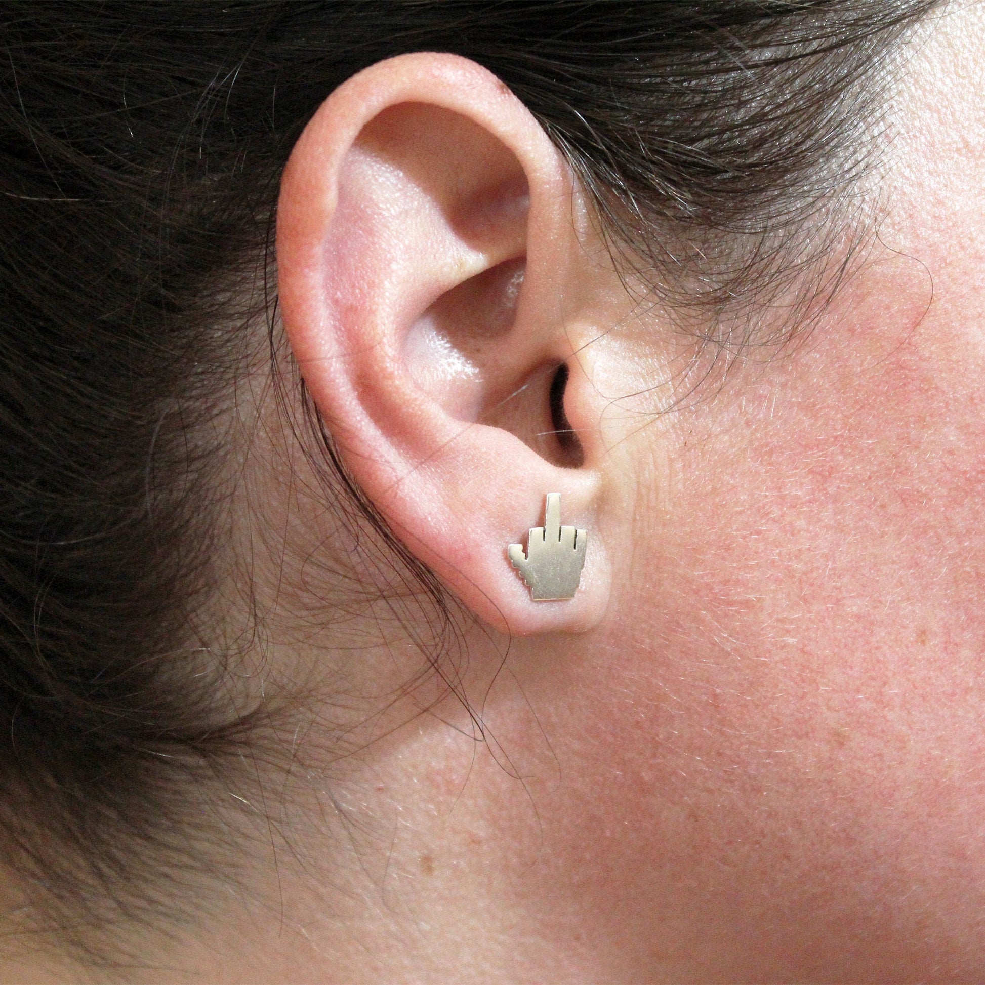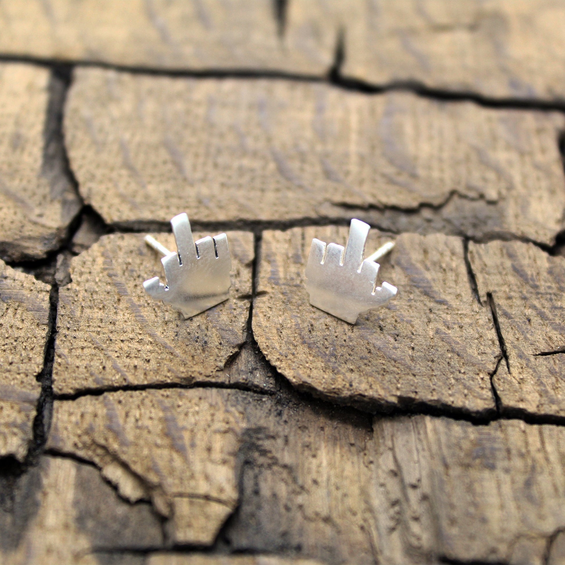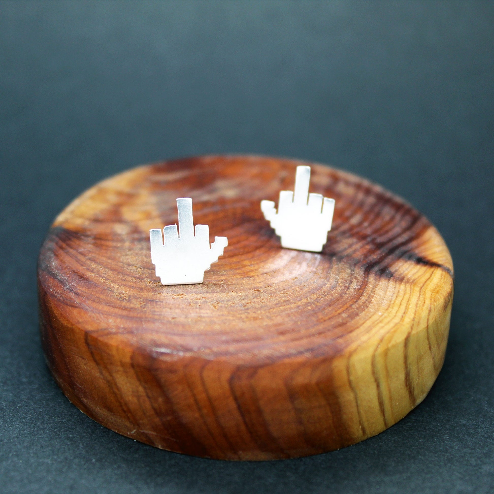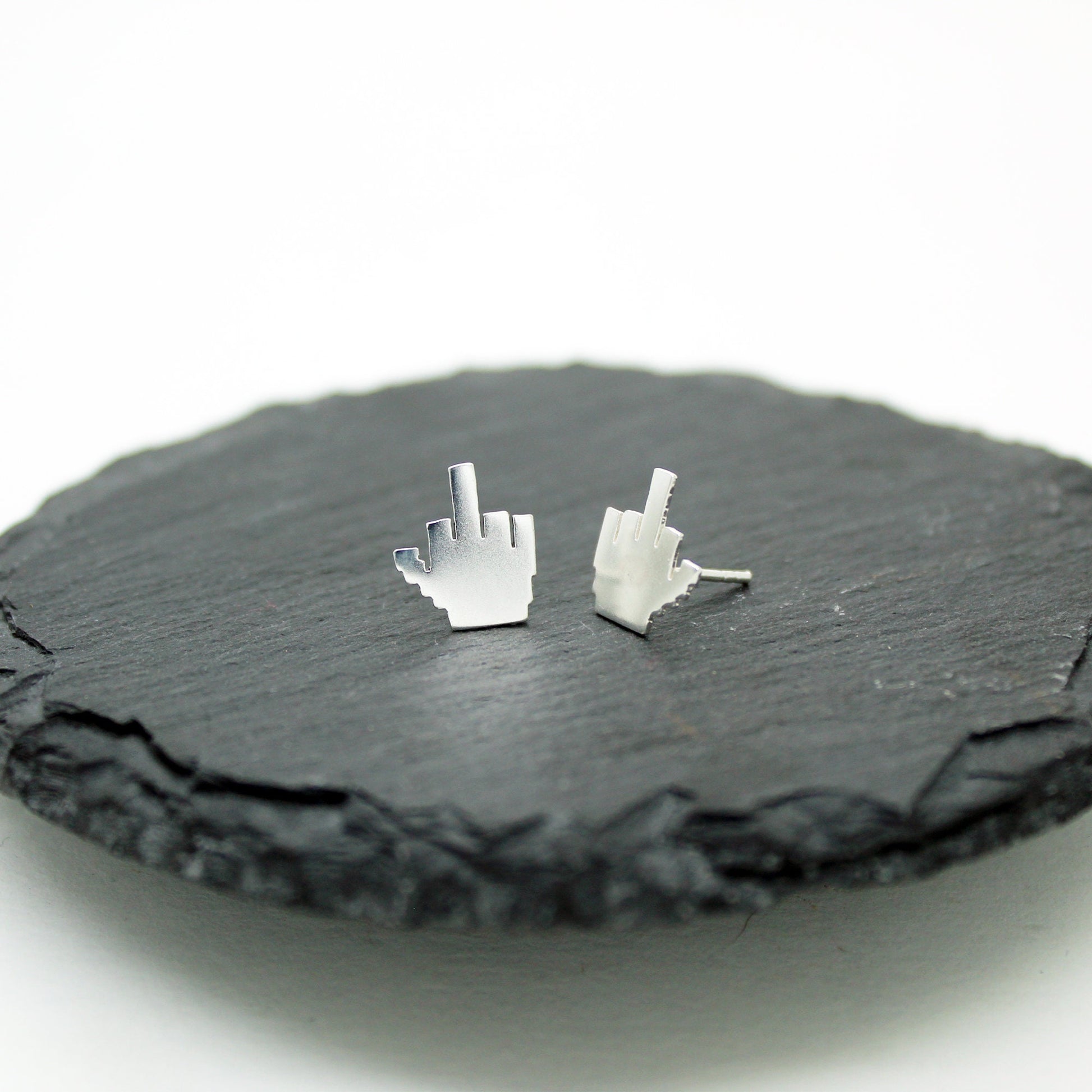 925 silver earrings 8-bit middle finger.