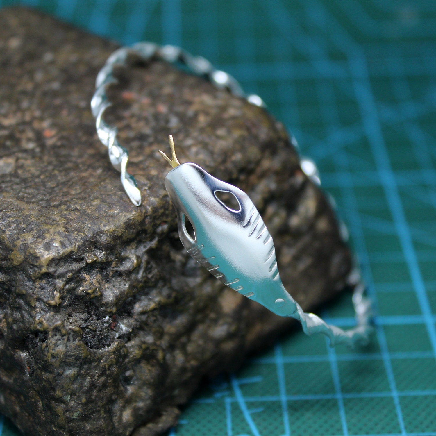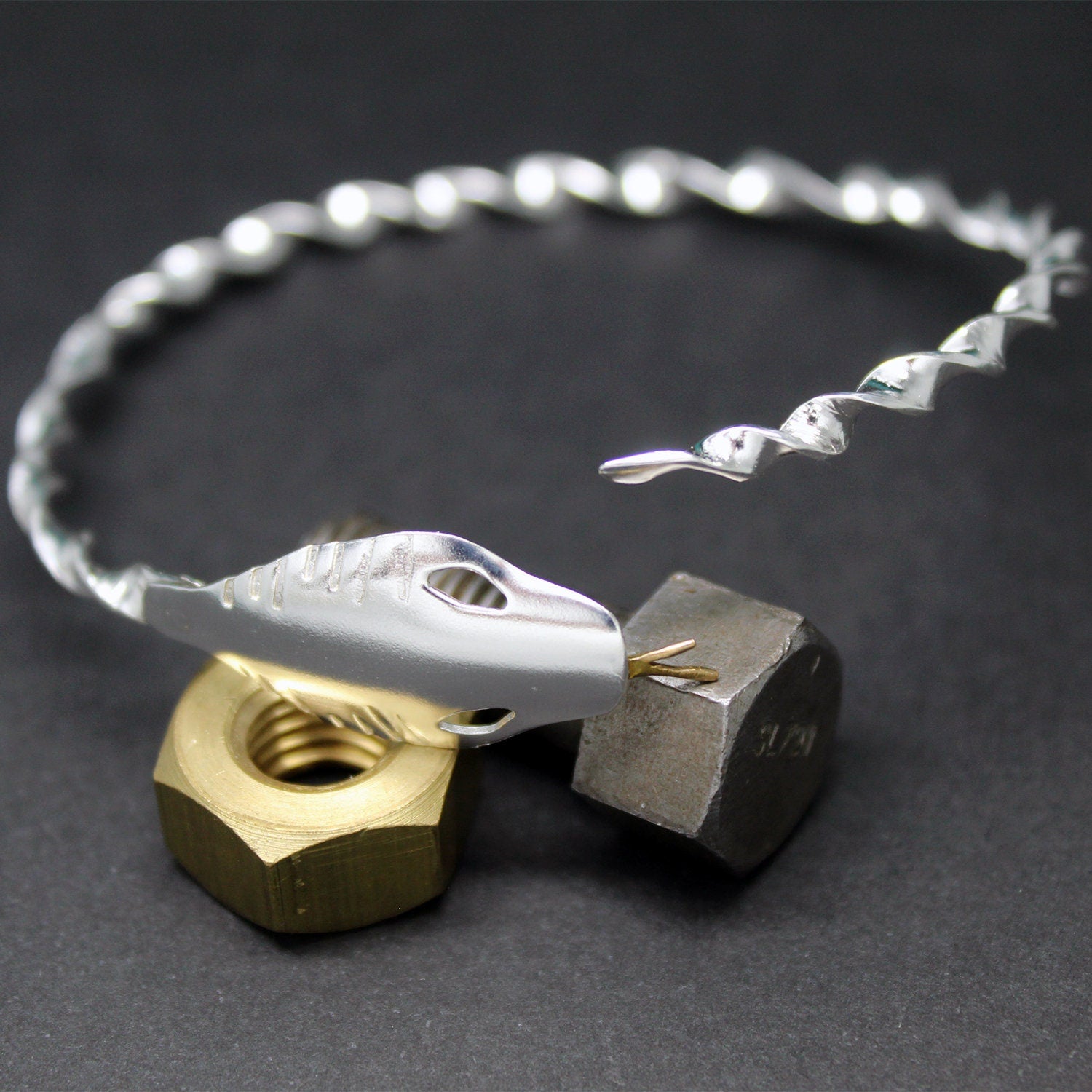 Un bonito brazalete de plata que representa una serpiente con la lengua de latón que se enrosca en el antebrazo. Un regalo o capricho ideal para las mayores fans de los "N Mundos".