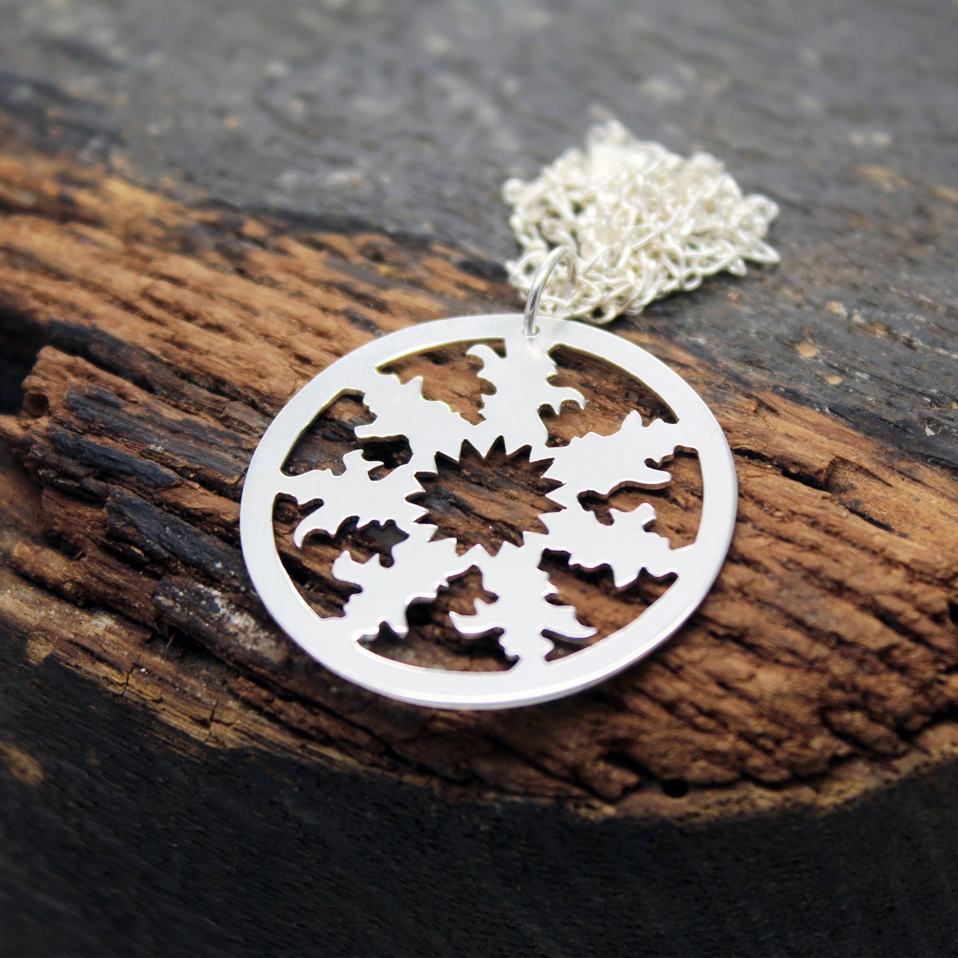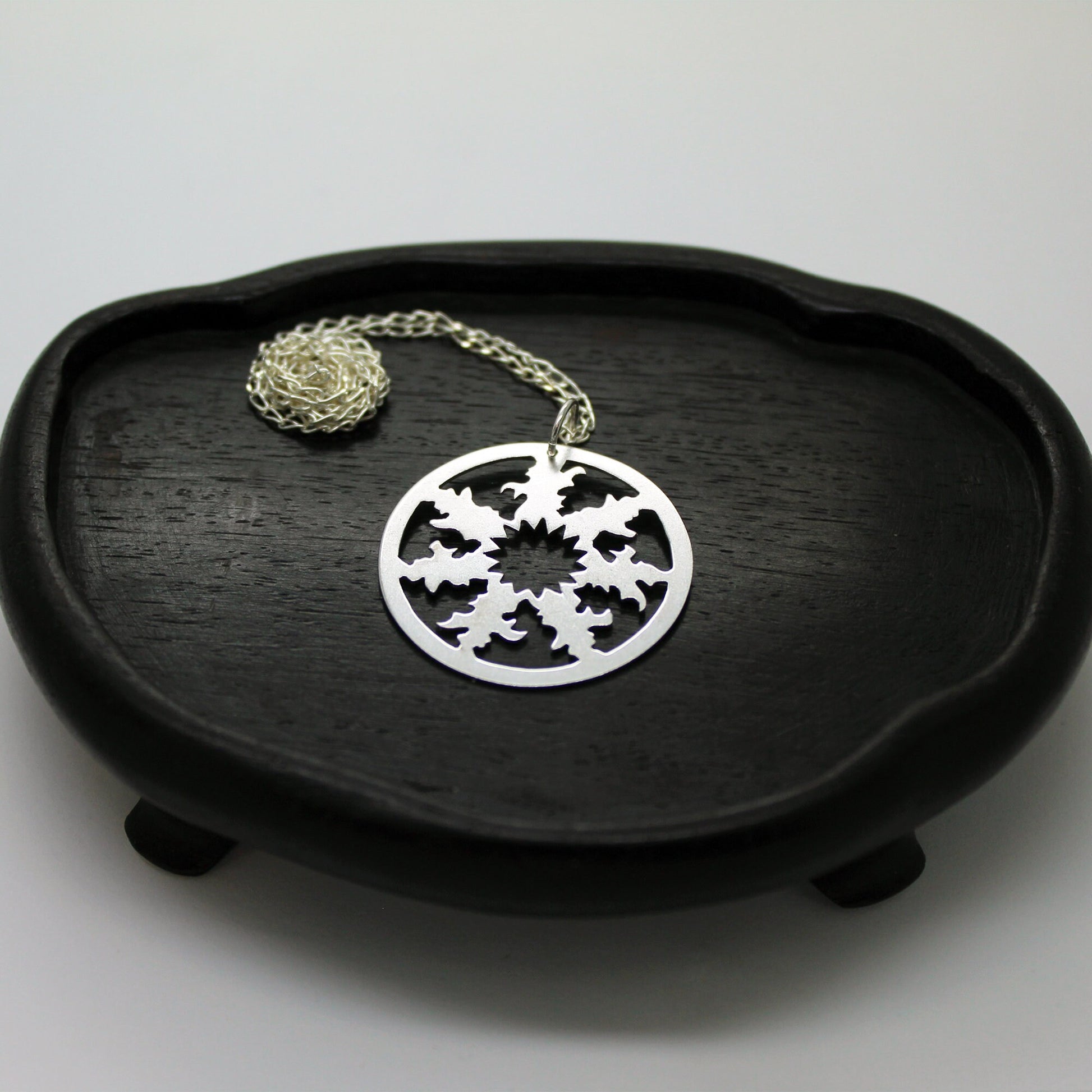 Un colgante único para un regalo especial. Toda la pieza está realizada calando el dibujo a mano en plata 925. El eguzkilore o "Flor del sol" es un tipo de cardo al que tradicionalmente se le atribuyen propiedades protectoras del hogar en Euskal Herria. Se cuentan cientos de historias sobre ellos y se han convertido en todo un símbolo de protección.