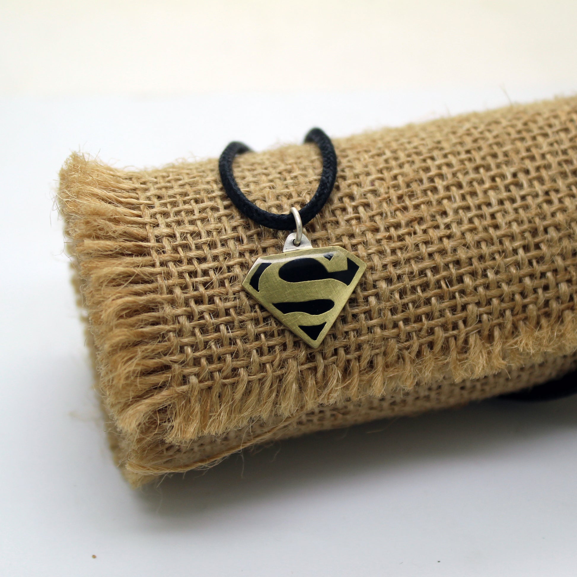 El colgante perfecto para los auténticos héroes o heroínas de cada casa. Todo el colgante está elaborado a mano con plata 925 y latón. El colgante representa el logotipo de Superman calado a mano en latón sobre una lámina de plata 925, que es la que está en contacto con la piel, para evitar alergias. Además el latón está relleno de resina UV negra y protegido con resina UV transparente, evitando su oxidación.