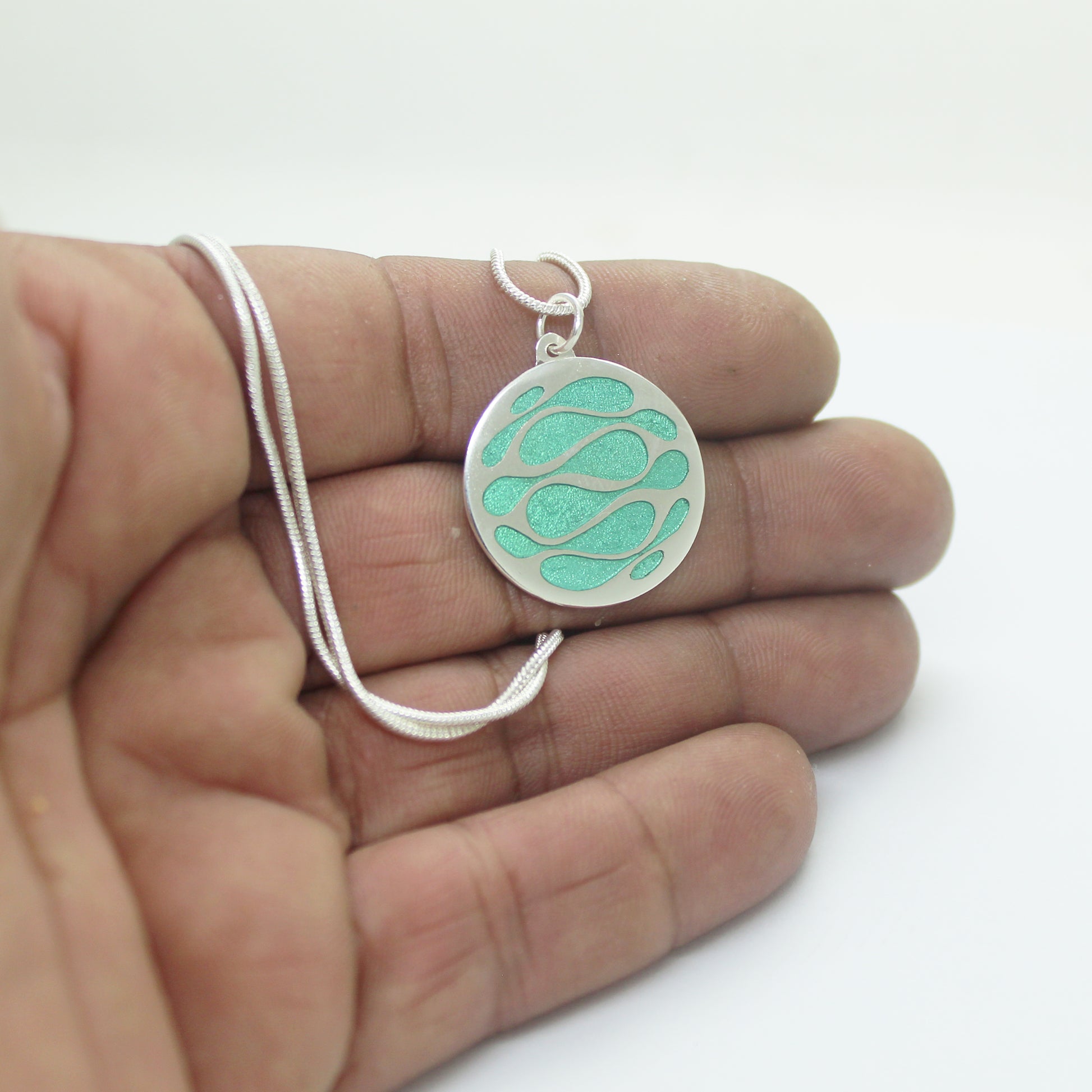 Un colgante que te aportará todo el brillo y la luz de esta primavera. Realizado a mano en plata 925, la resina UV es semitransparente, dejando ver el brillo de la capa inferior de plata. Muy ligero y perfecto para llevar a diario.