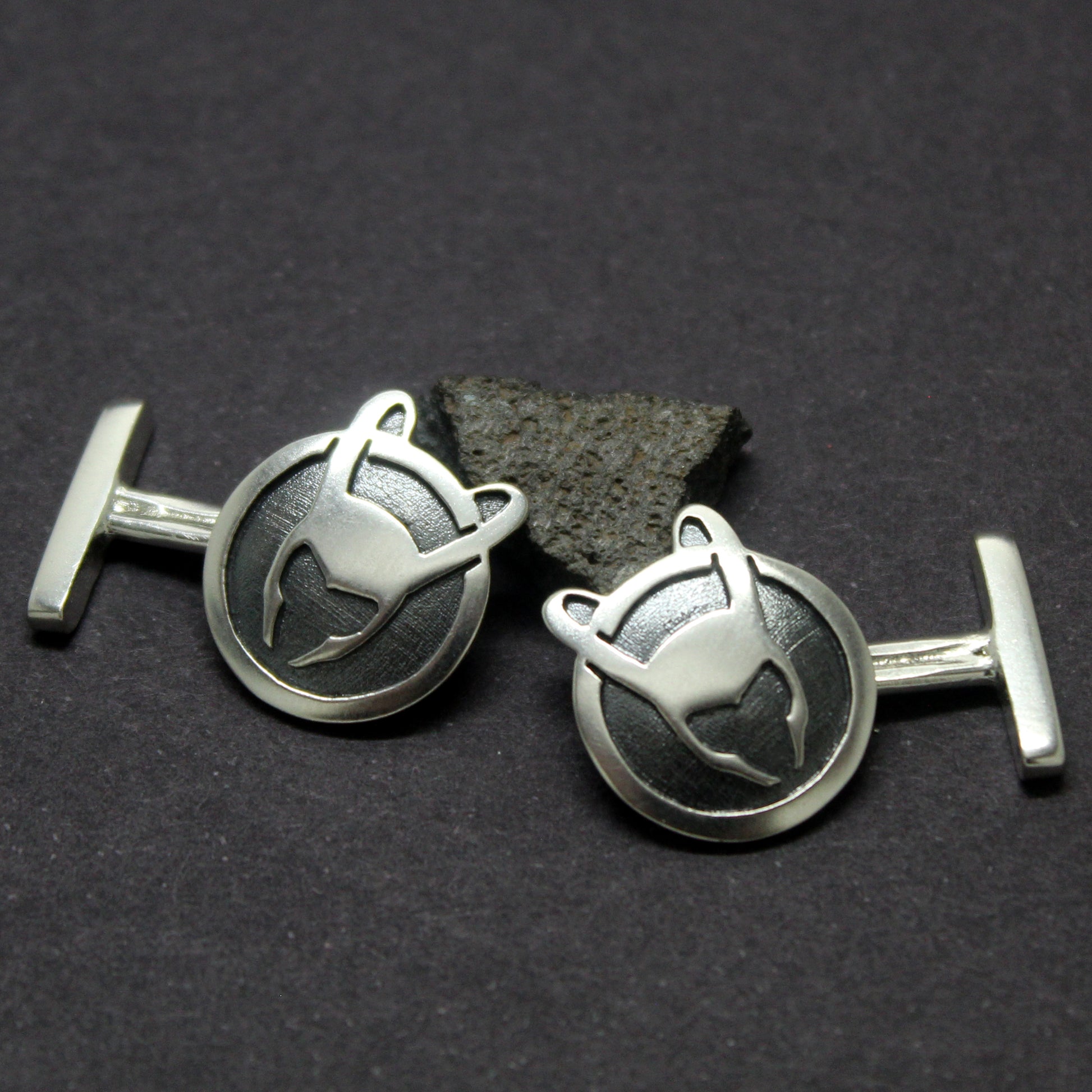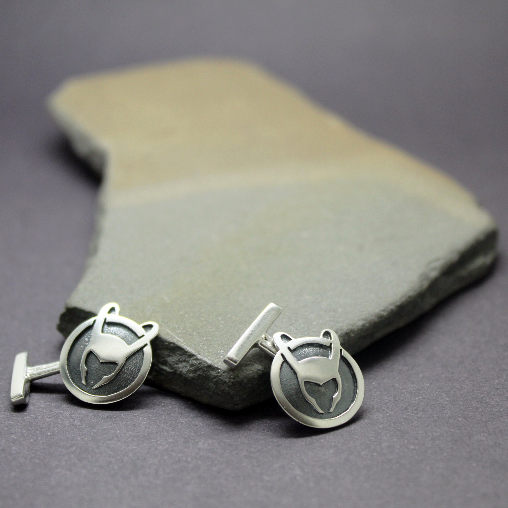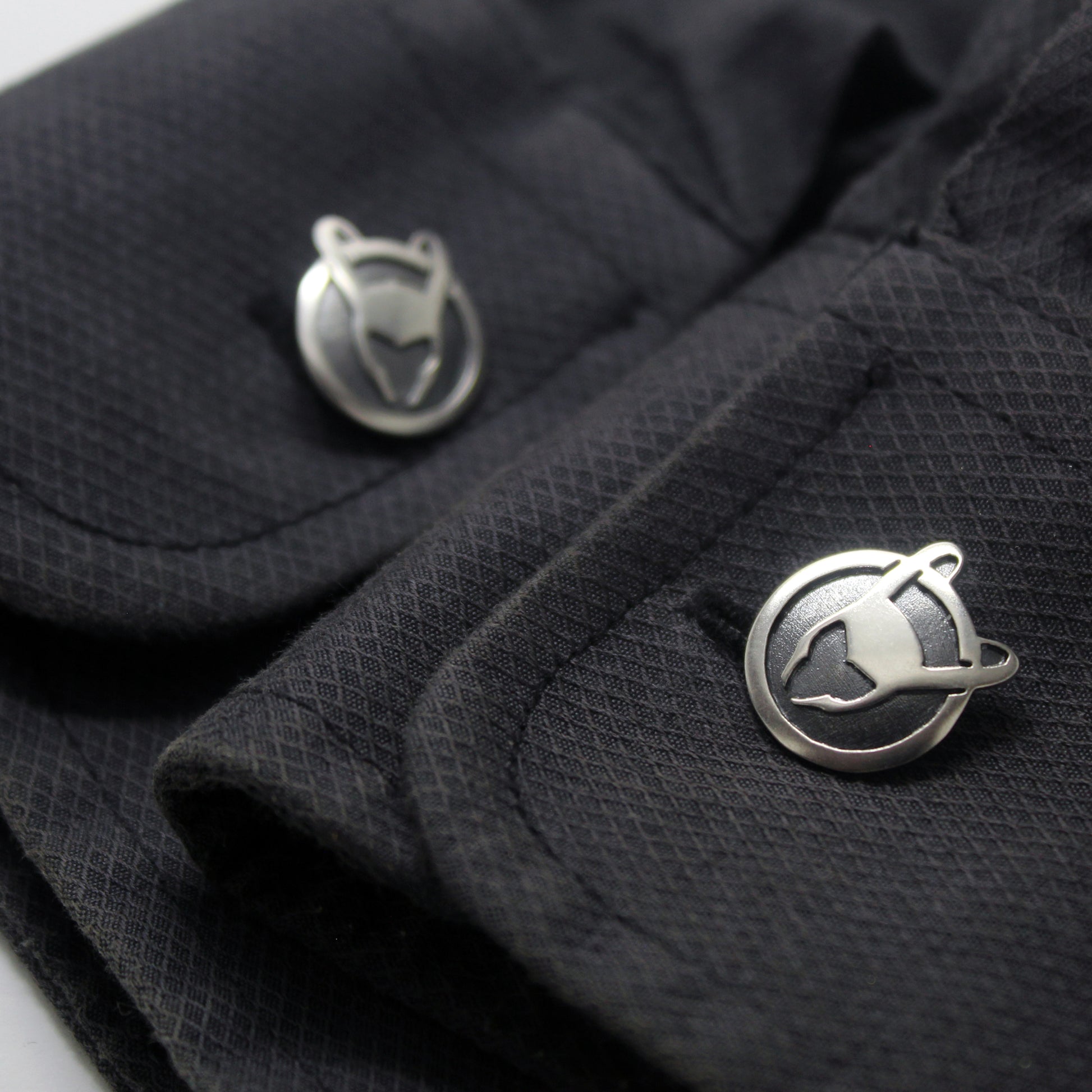 Unos espectaculares gemelos que se inspiran en el símbolo del supervillano (o no?) Loki Odinson. Ideales para regalar al más friki de la casa, al apasionado de los superhéroes y fan total del UCM. Realizados totalmente en plata, están acabados con una suave pátina gris en el segundo plano para dar profundidad al conjunto.