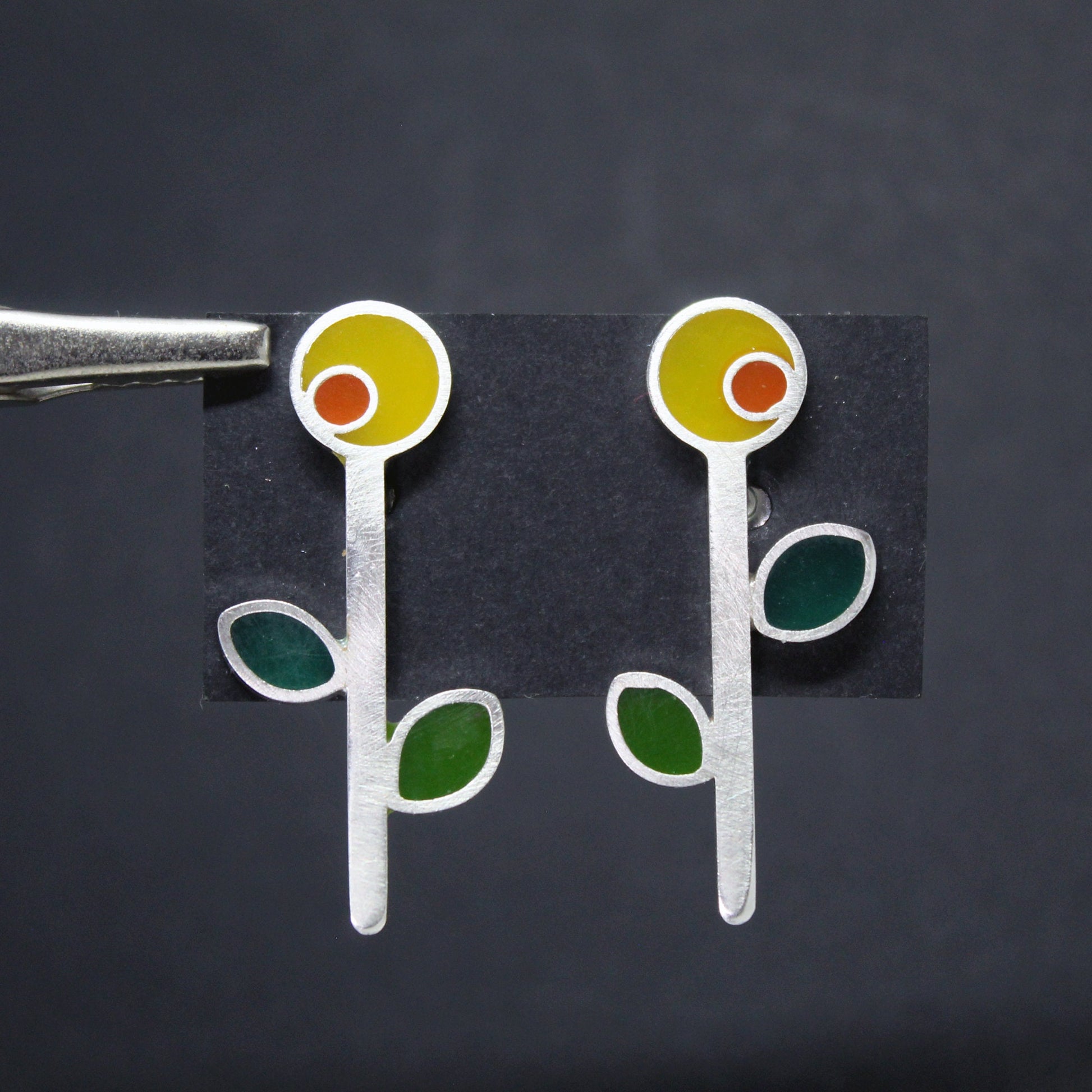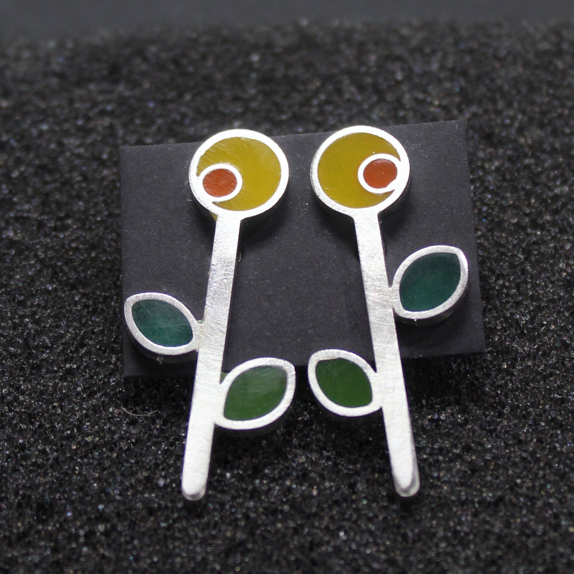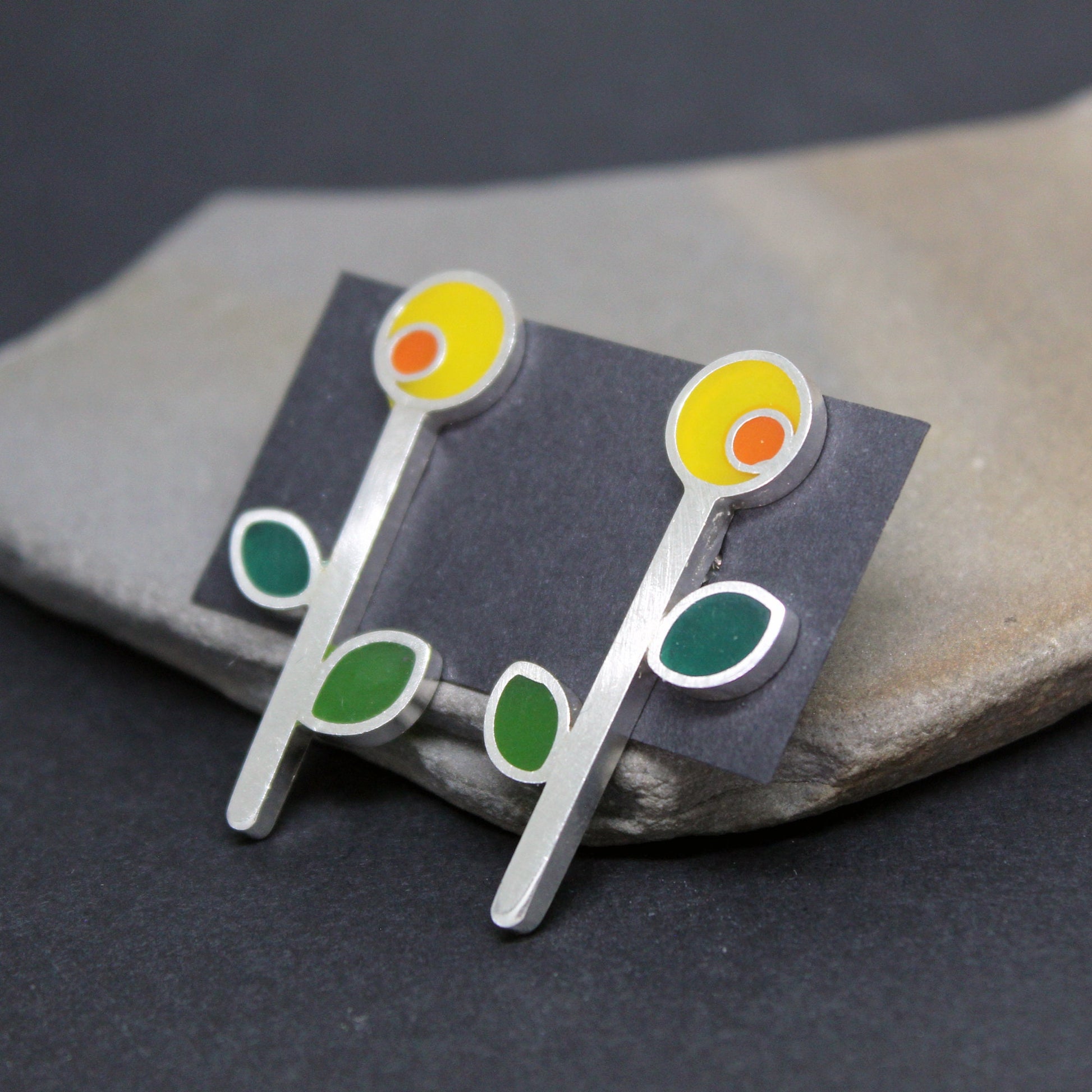 Pendientes de plata 925 girasoles de colores.