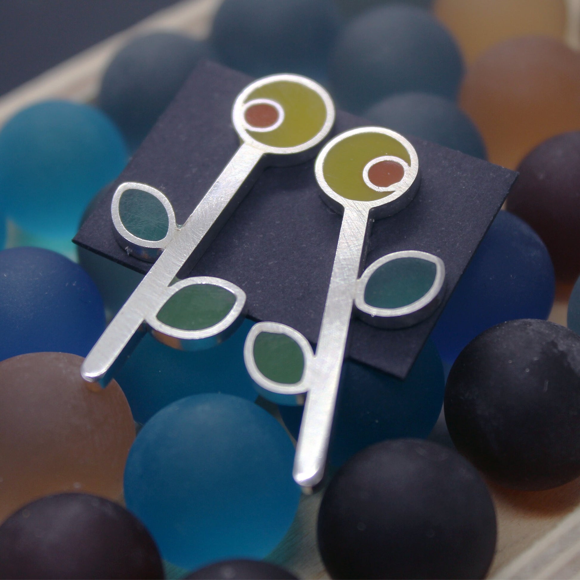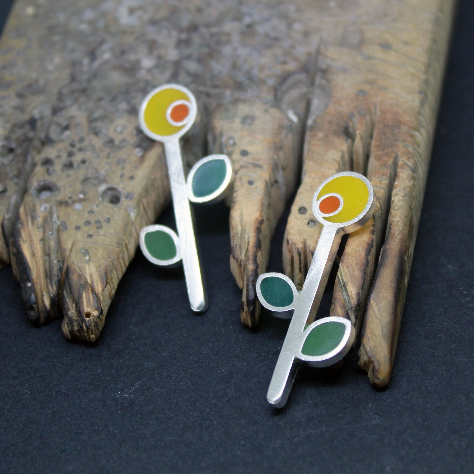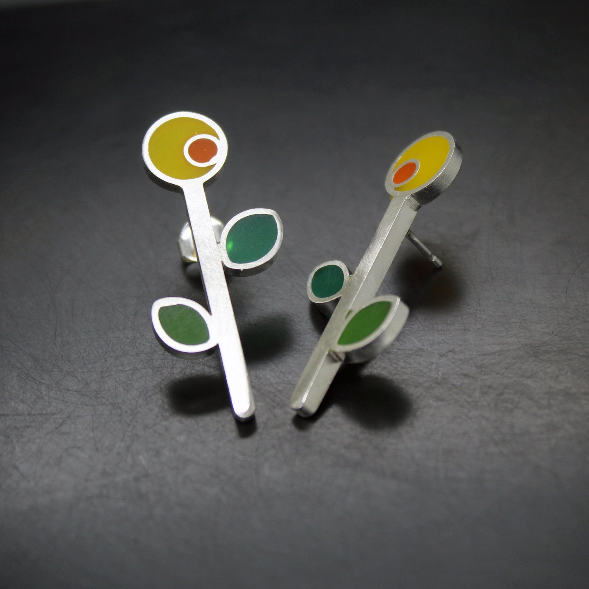 Pendientes de plata 925 girasoles de colores.