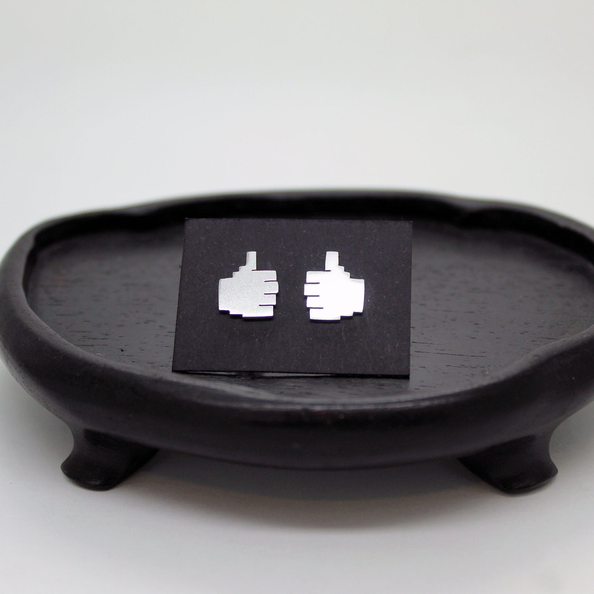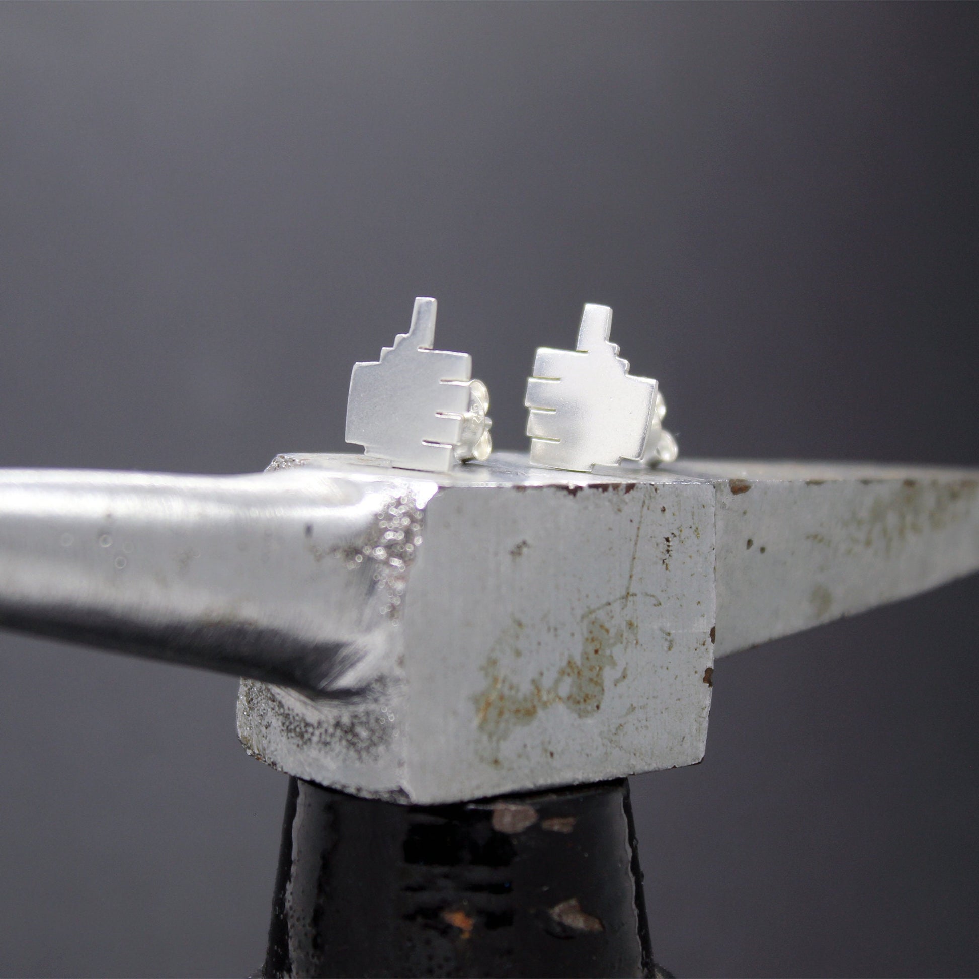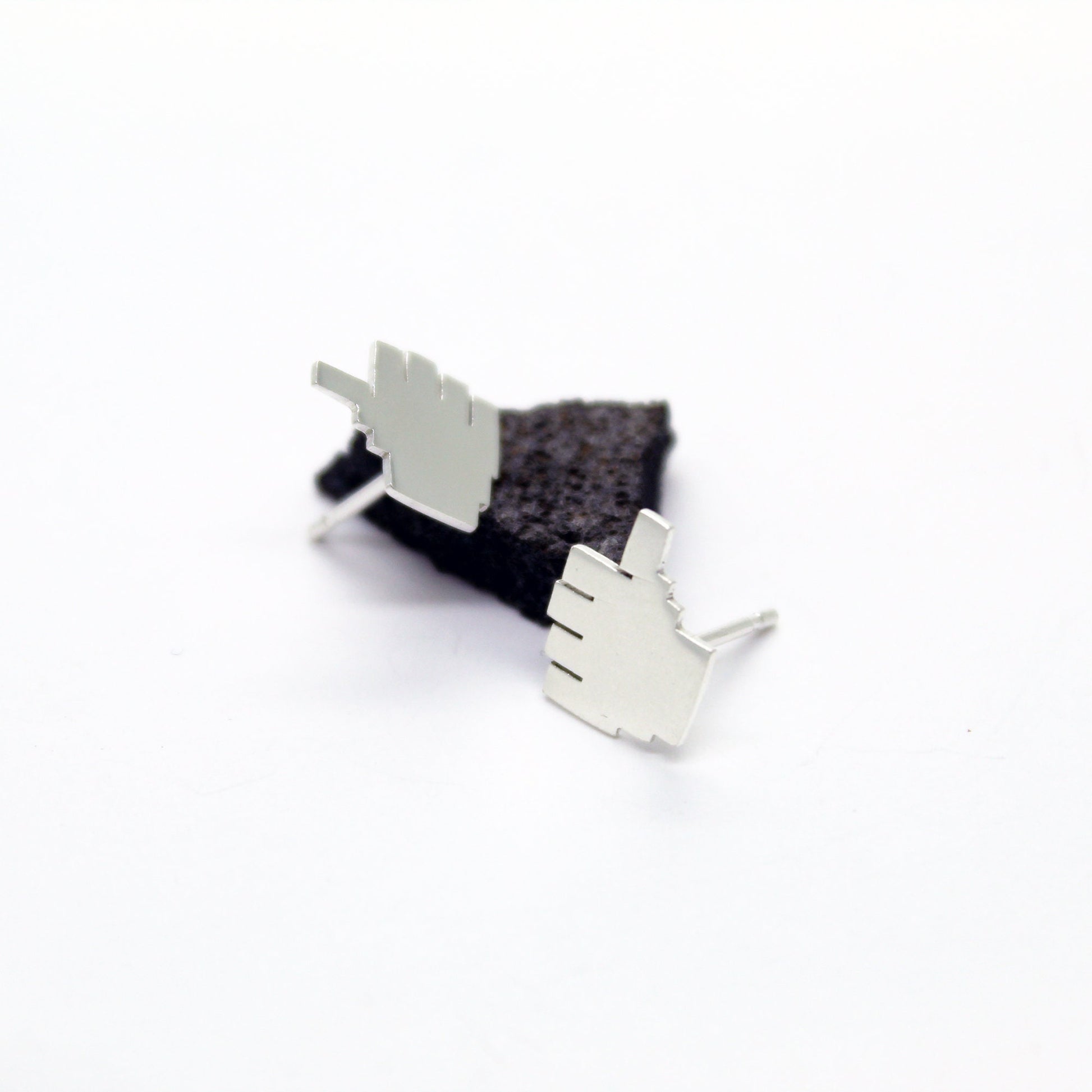 Pendientes de plata 925 con el pulgar hacia arriba o like de 8 bits.