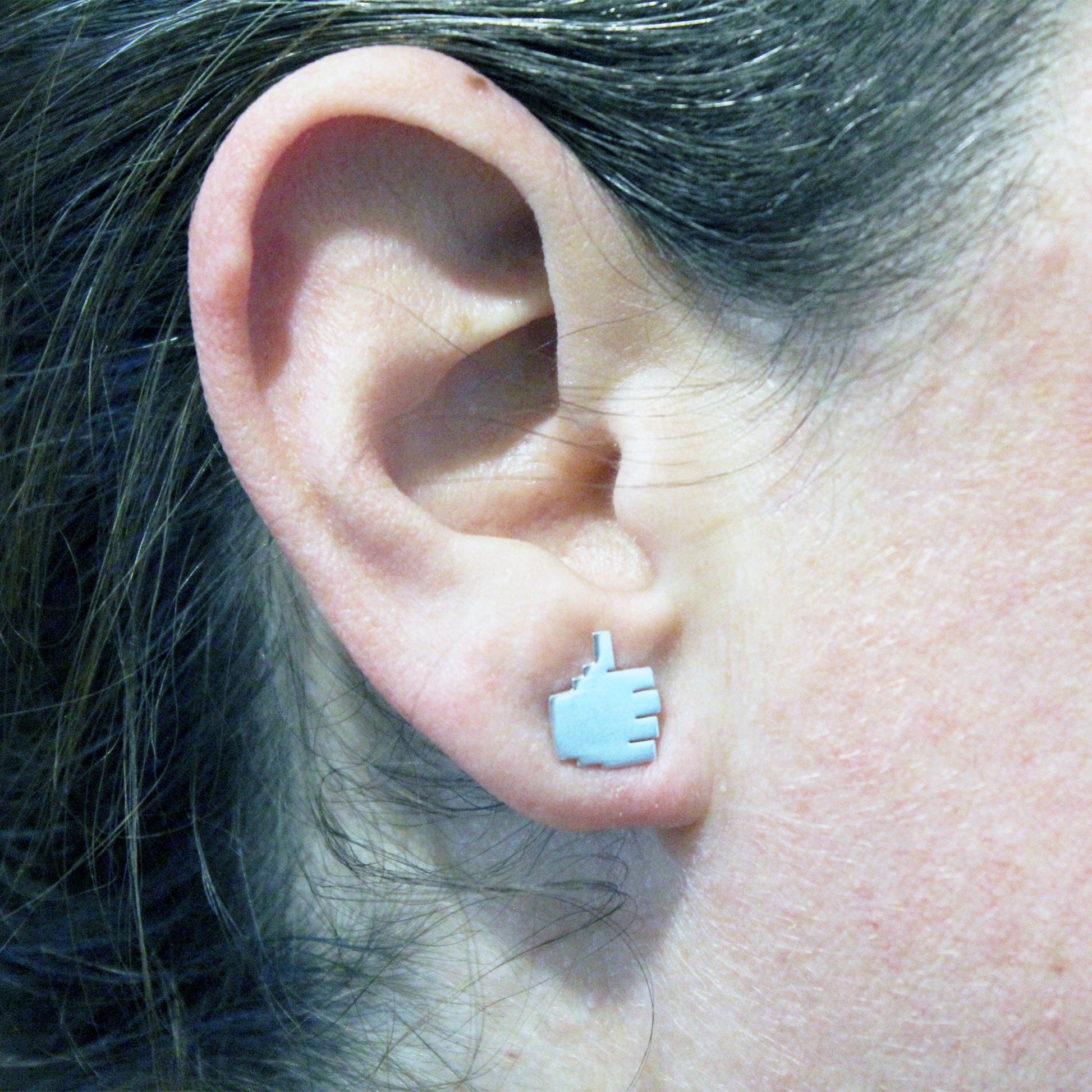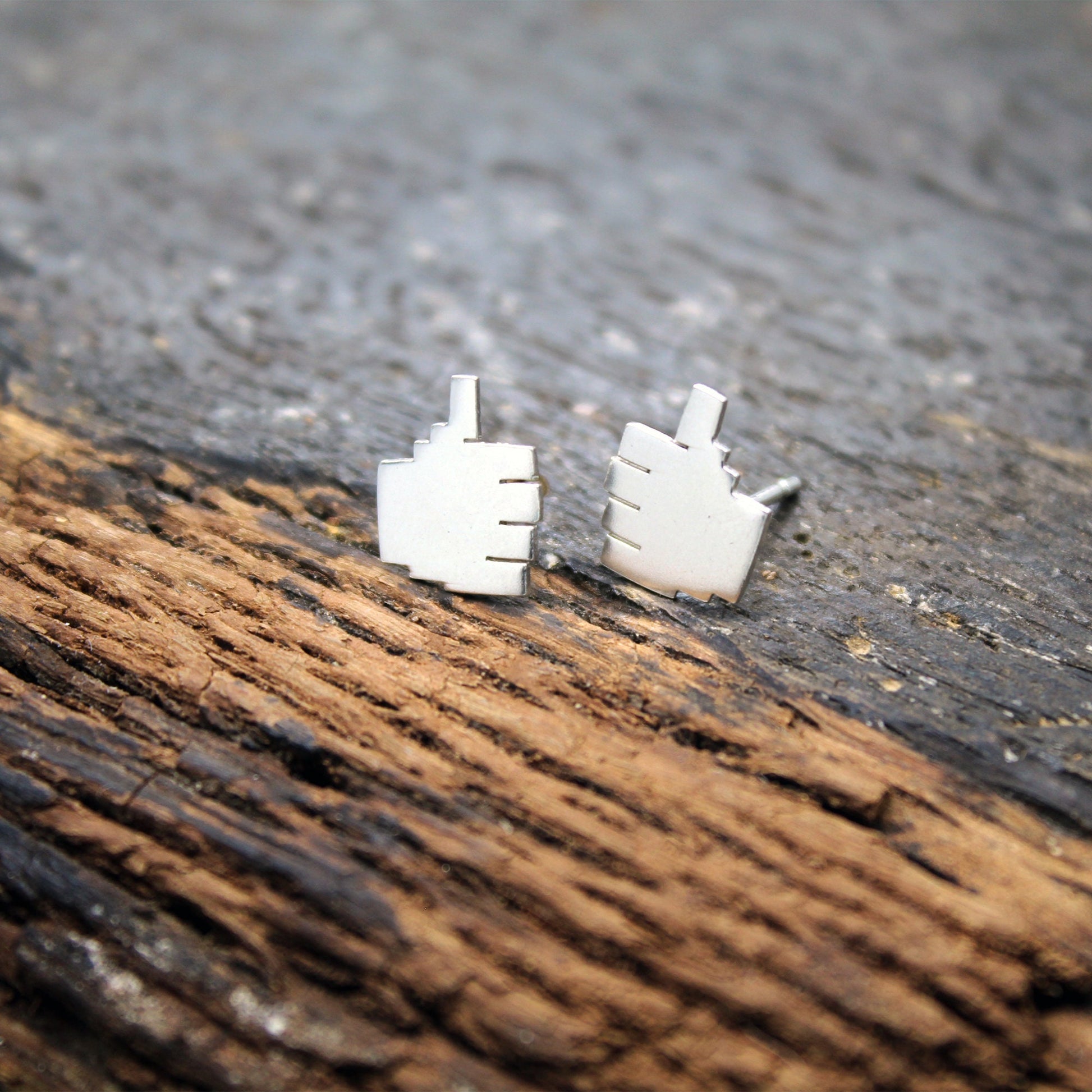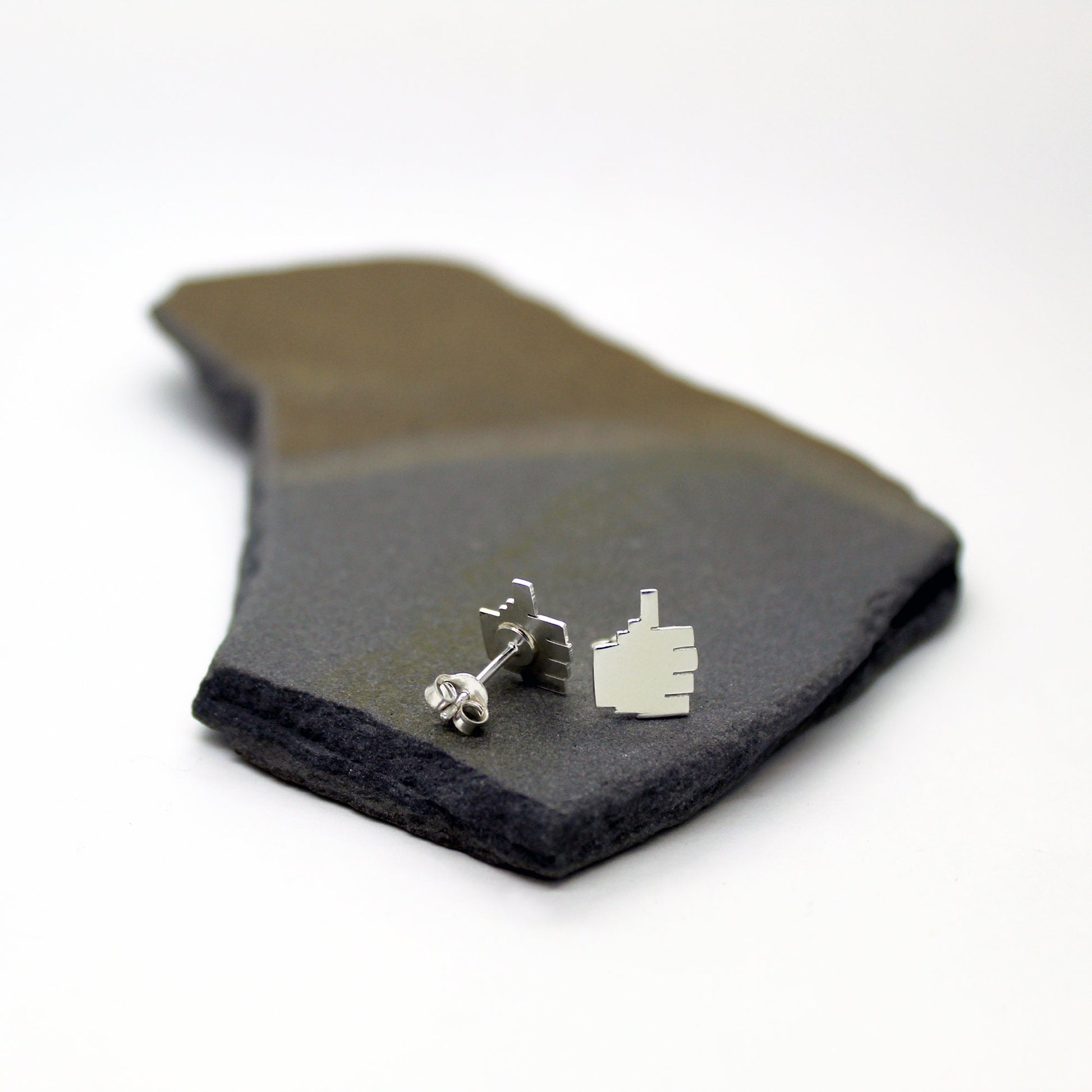 Pendientes de plata 925 con el pulgar hacia arriba o like de 8 bits.