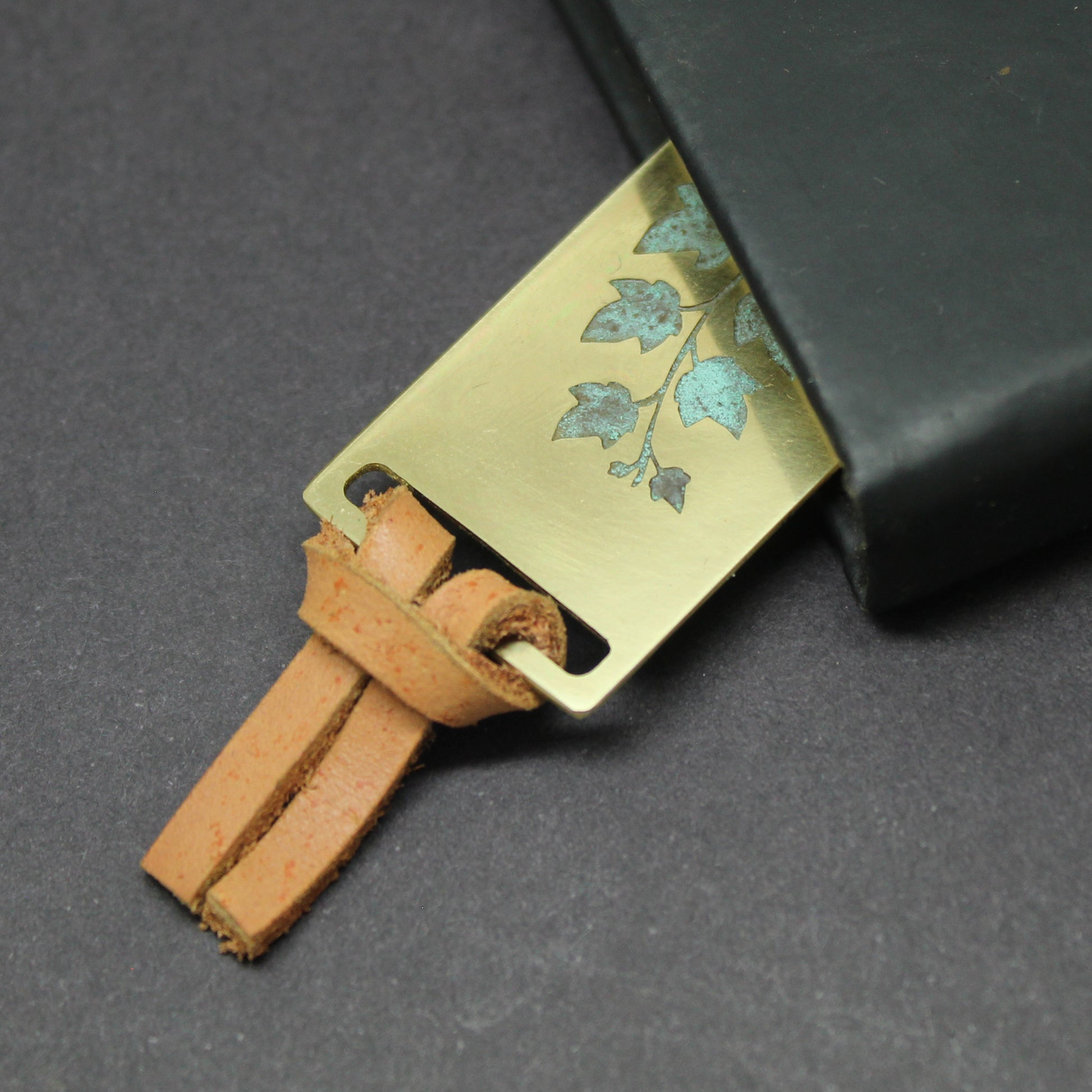 Marcapáginas de latón con grabado de hiedras