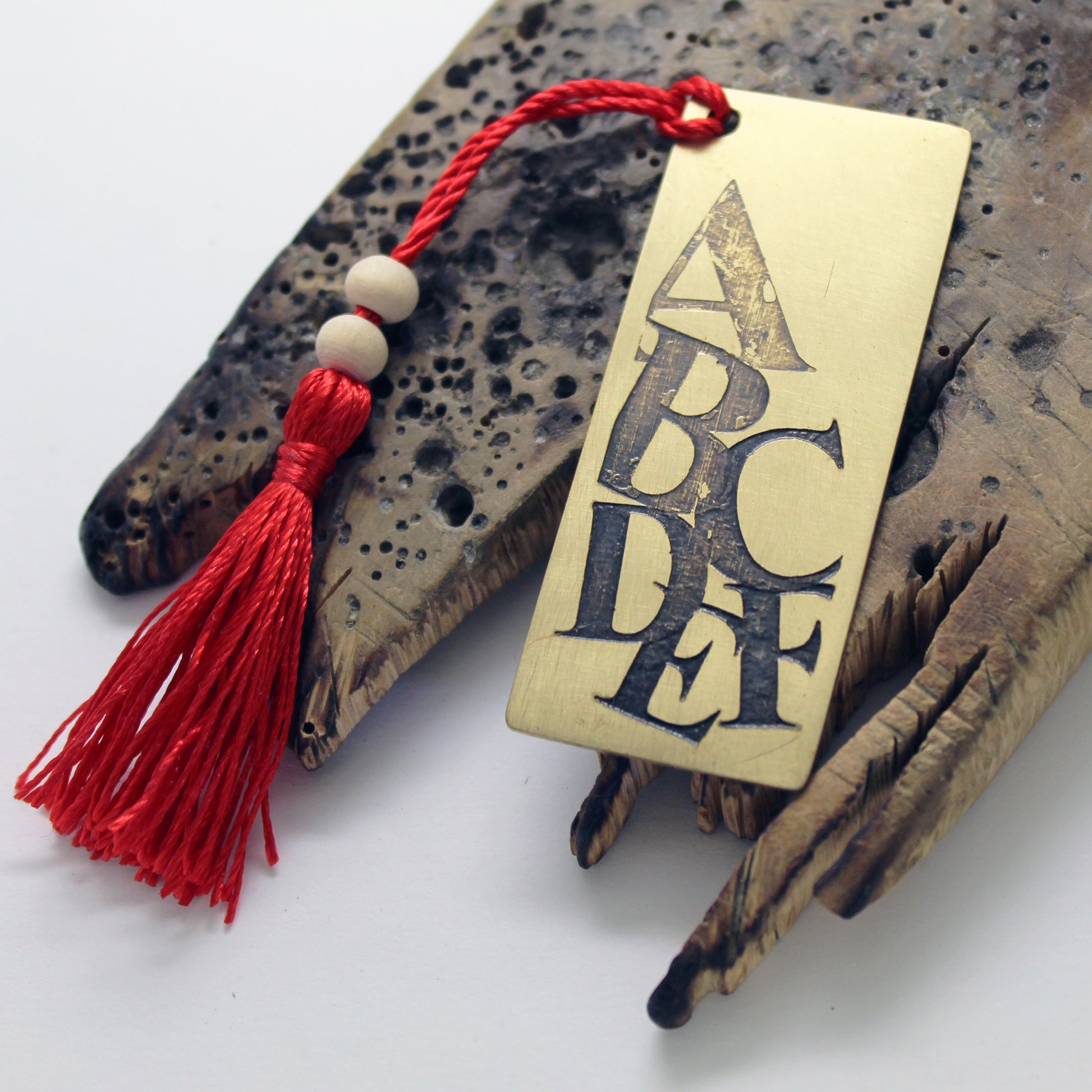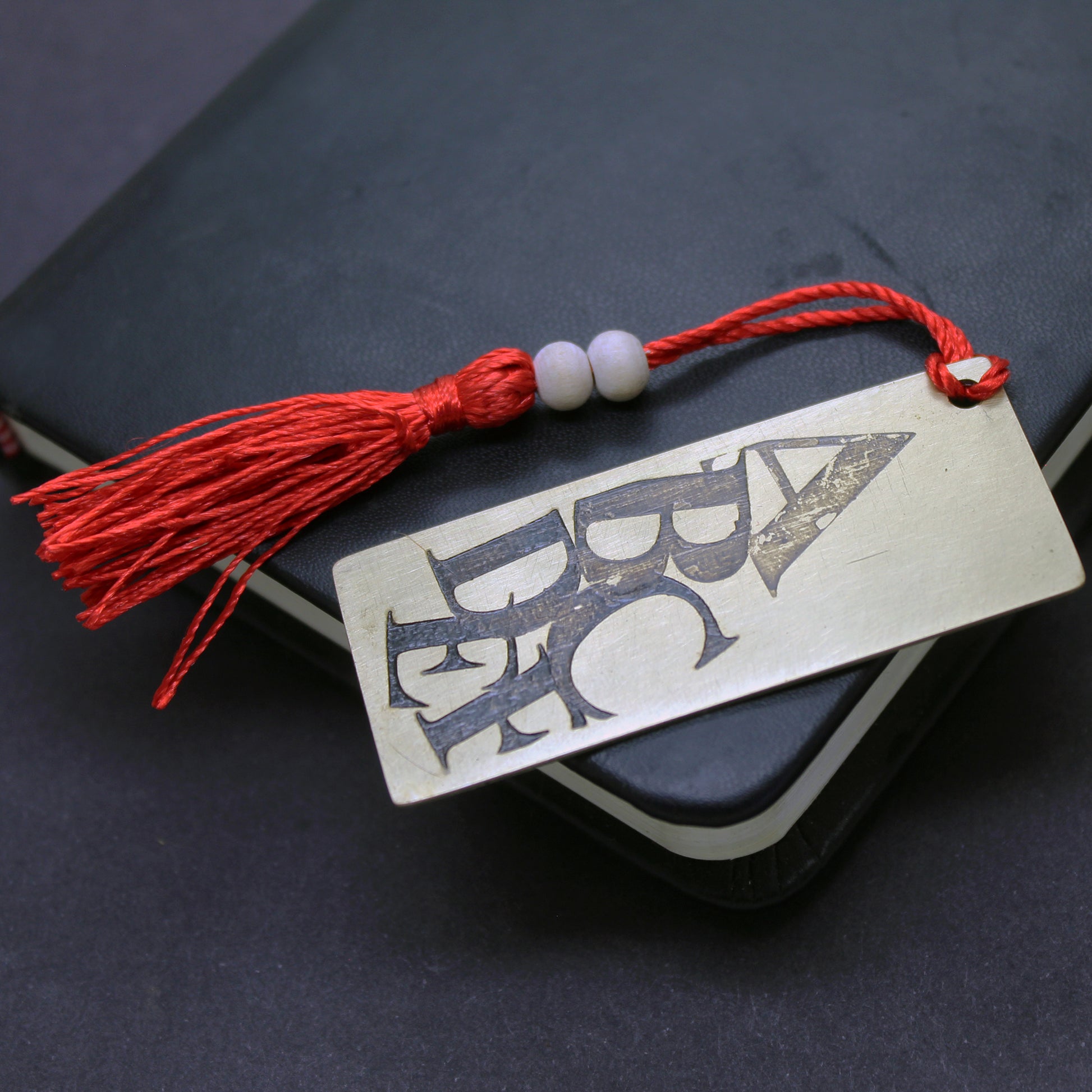 Nada más indicado que una buena lectura para crear momentos especiales y reconfortantes. Acompáñalos con este marcapáginas de latón hecho a mano, grabado con un conjunto de letras mayúsculas que se superponen en distintos planos.
